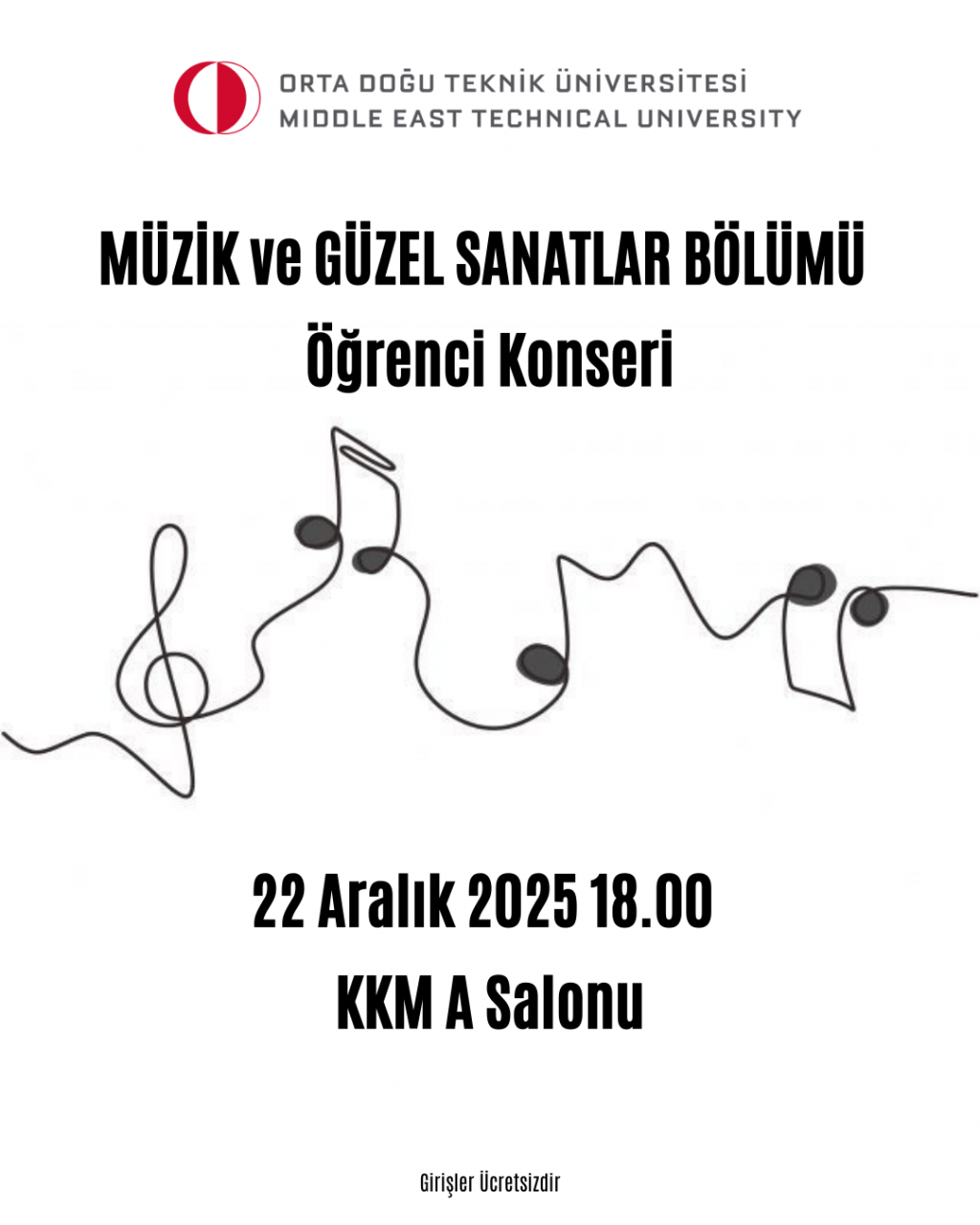 We invite you to an enjoyable evening filled with the fresh interpretations of young musicians: METU Department of Music and Fine Arts Student Concert!